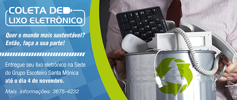 ‘Print’Publicado outubro 7, 2017 em 800 × 339 em Grupo de Escoteiro Santa Mônica faz coleta de lixo eletrônico, by Vanessa Malucelli ‹ Return to post Deixe um comentário Cancelar resposta Δ
