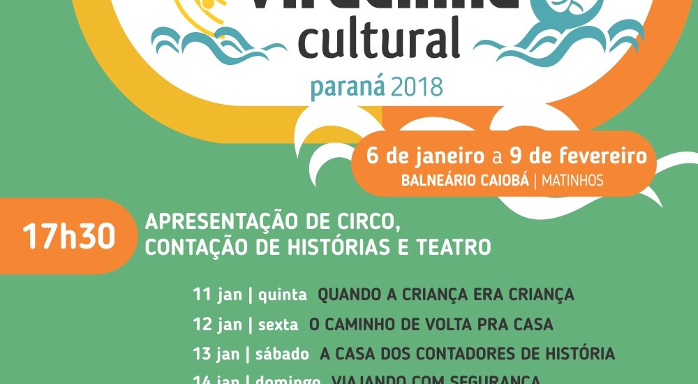 A Viradinha Cultural Paraná 2018 apresenta de quinta a domingo, sempre às 17h30, um espetáculo divertido e educativo na tenda montada no Balneário de Caiobá, em Matinhos. São peças de teatro, espetáculos circenses e contação de histórias voltados ao público infantojuvenil. A entrada é gratuita e a classificação livre.