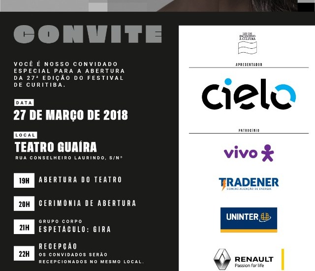 Nesta terça-feira aconteceu a Festa de Abertura – Festival de Teatro de Curitiba – 27ª Edição.
