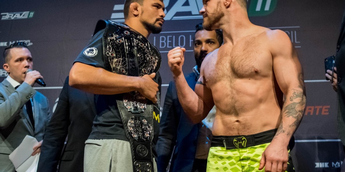 O Brave 11 marca a estreia da organização em Belo Horizonte e contará com duas disputas de cinturão – o título interino dos leves estará em jogo na luta principal por Luan “Miau” Santiago e Lucas “Mineiro” Martins, enquanto o campeão meio-pesado Klidson de Abreu defende sua coroa diante do canadense Matt Baker. O show também conta com a estreia da lenda do jiu-jitsu Bruno Malfacine no Brave (enfrenta o lutador local Rafael “Mini-Man”), além de Gesias Cavalcante x Erivan Pereira e o ex-Bellator Rodrigo Cavalheiro enfrentando Alessandro Gambulino.