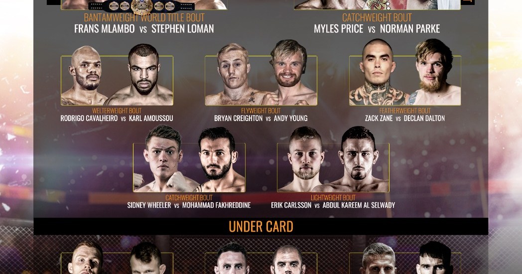 O norte-irlandês Norman Parke, ex-lutador do UFC, é outro atleta que fará sua estreia no evento, a exemplo de Amoussou. O peso leve enfrenta o inglês Myles Price em disputa de peso casado de 73 kg. O duelo também é uma revanche, já que Parke levou a melhor no primeiro duelo entre os dois.