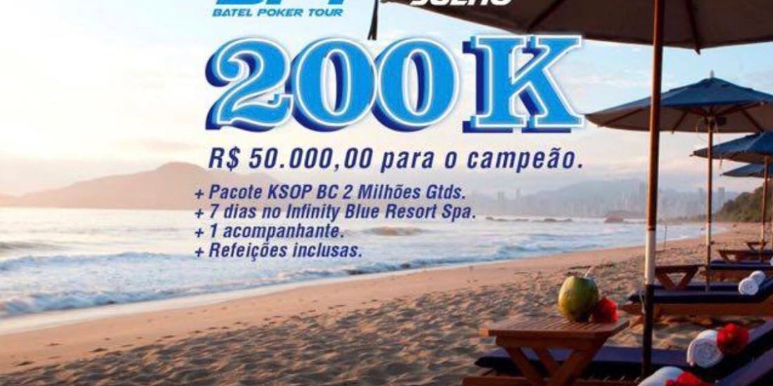 Entre os dias 9 e 17 de julho, o Batel Poker Clube promove o BPT de férias – 200k, grande torneio em parceria com a Audi e especial para as férias de julho. O campeão vai garantir R$ 50 mil e sete dias com acompanhante em um resort, com todas as refeições inclusas. Além dos prêmios, o vencedor garante um buy-in de R$ 1.500 para um dos maiores torneios do Brasil, o KSOP BC 2 milhões garantidos.