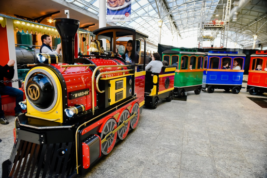 E que tal passear pelos corredores do shopping em um trenzinho? Ou em carrinhos motorizados em formato de ursos ou de veículos vintage e esportivo? No piso L1, o cliente encontra as três opções.