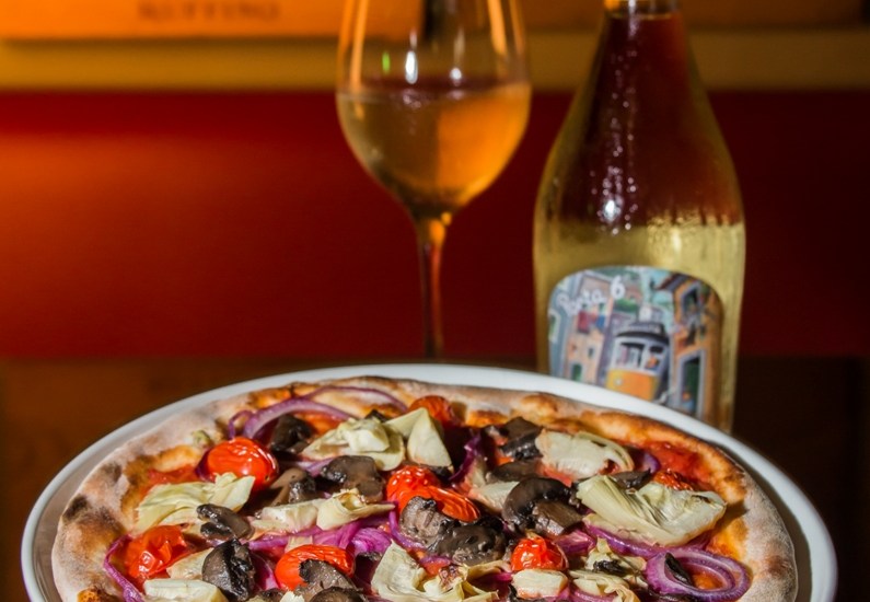 Os vinhos podem ser harmonizados com opções como Blumenau (Molho de tomate, mussarela, linguiça blumenau e cebola), Trufas Negras (Molho de tomate, mussarela e pasta de trufas negras), Burrata e Presunto Parma (Molho de tomate, mussarela, burrata e presunto parma) e Parma & Grana (Molho de tomate, mussarela, tomate, presunto Parma, rúcula e grana padano).