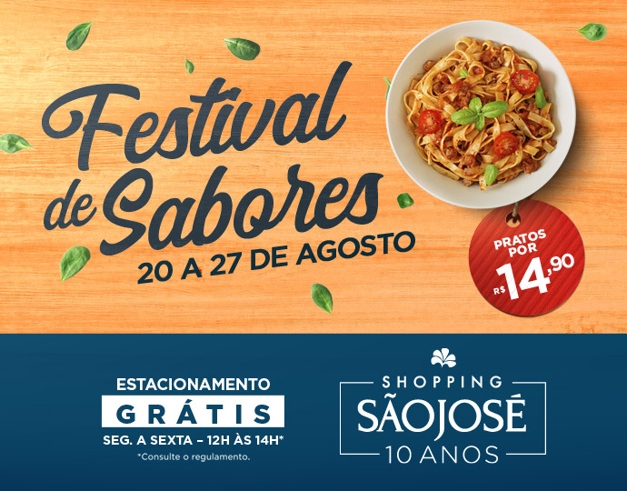 ‘Festival de Sabores 01’Publicado agosto 16, 2018 em 690 × 540 em Festival de Sabores reúne o melhor da gastronomia no Shopping São José ‹ Return to post Deixe um comentário Cancelar resposta Δ