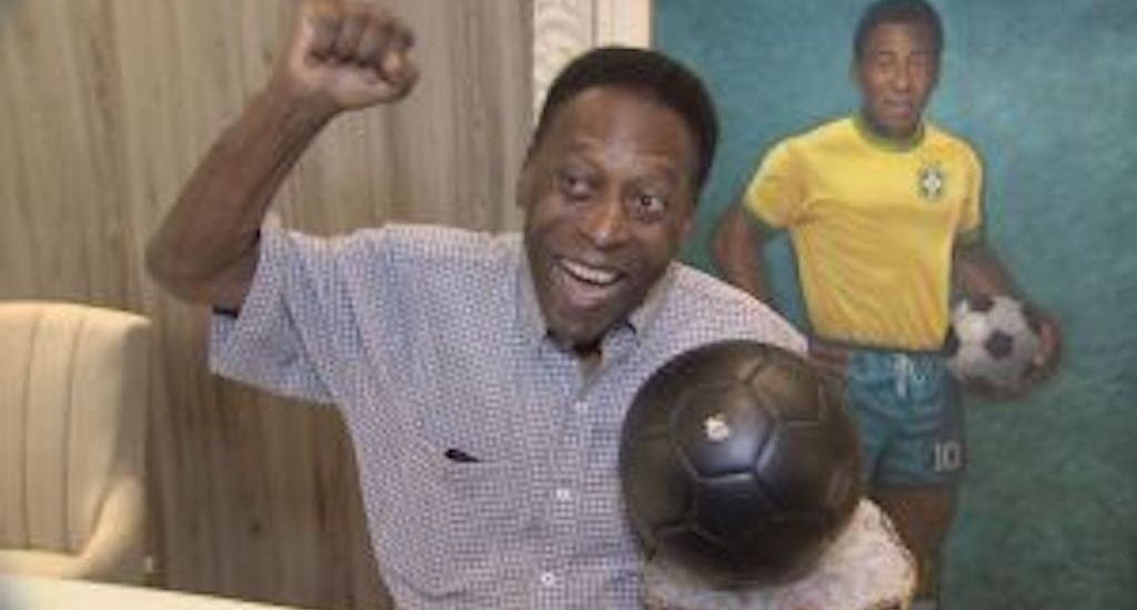 A bola que virou arte, inspirada no “Rei Pelé”, foi entregue ao ídolo mudnial.