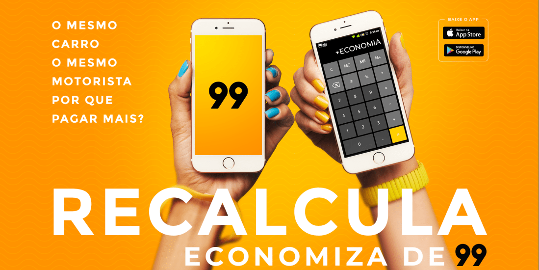 A campanha inclui também pesquisas comparativas, com valores de corridas para trechos equivalentes, mostrando que usando o mesmo carro e o mesmo motorista, a 99 é até 15% mais barata que a concorrência. Até o final do ano, a empresa promoverá ações promocionais que darão a oportunidade de recalcular o valor, o tempo e a maneira de escolher realizar atividades cotidianas.