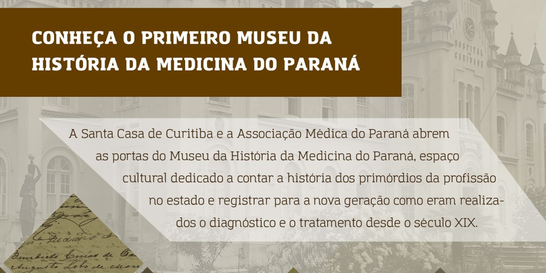No dia 28 de janeiro, a Santa Casa de Curitiba e a Associação Médica do Paraná (AMP) abrem as portas do Museu da História da Medicina do Paraná, primeiro do estado dedicado a contar a história desta profissão que marcou a trajetória da nossa sociedade desde o século XIX. A solenidade será às 11h, na Santa Casa, localizada no centro de Curitiba, e contará com a presença de autoridades públicas e representantes dos órgãos representantes de classe, além de nomes importantes da medicina que ainda atuam na área.