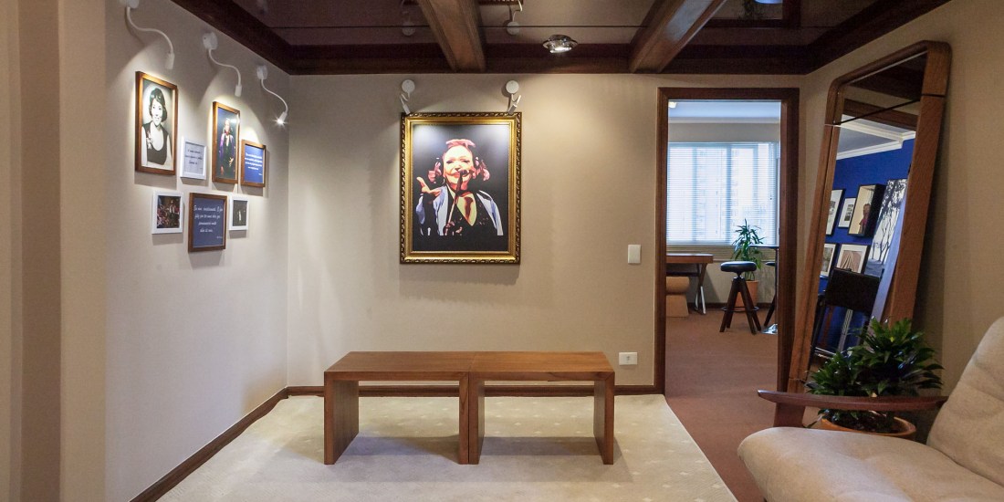 Chamado de “Espaço Bibi Ferreira” o local foi dividido em três áreas: a Sala Bibi Ferreira, que conta com um lounge para reuniões, networking e interação entre os artistas; a Sala Festival de Curitiba, feita para a realização de cafés com a imprensa e confraternizações; e a Sala de Entrevistas, onde os principais veículos de comunicação da área cultural e de entretenimento do país fazem suas entrevistas exclusivas. A ambientação conta com obras do artista Mayrus Michel, que transformou imagens de Bibi Ferreira com recursos da pop art. Todos os quadros e fotos foram cedidas pela família da homenageada e pelo fotógrafo Kraw Penas, que registrou o último show dela em Curitiba, são da Moldura Minuto. O espaço também recebeu a ornamentação de vasos, plantas e flores. “Como a suíte presidencial do Hotel Mabu Curitiba Business dispõe de um amplo banheiro, incluímos na produção de um grande espelho.