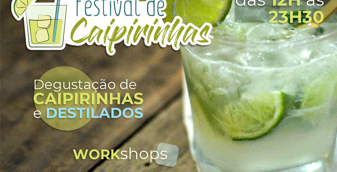 O Festival de Caipirinhas também conta com expositores de destilados, vinhos, cervejas e utensílios. Confira a programação do evento: