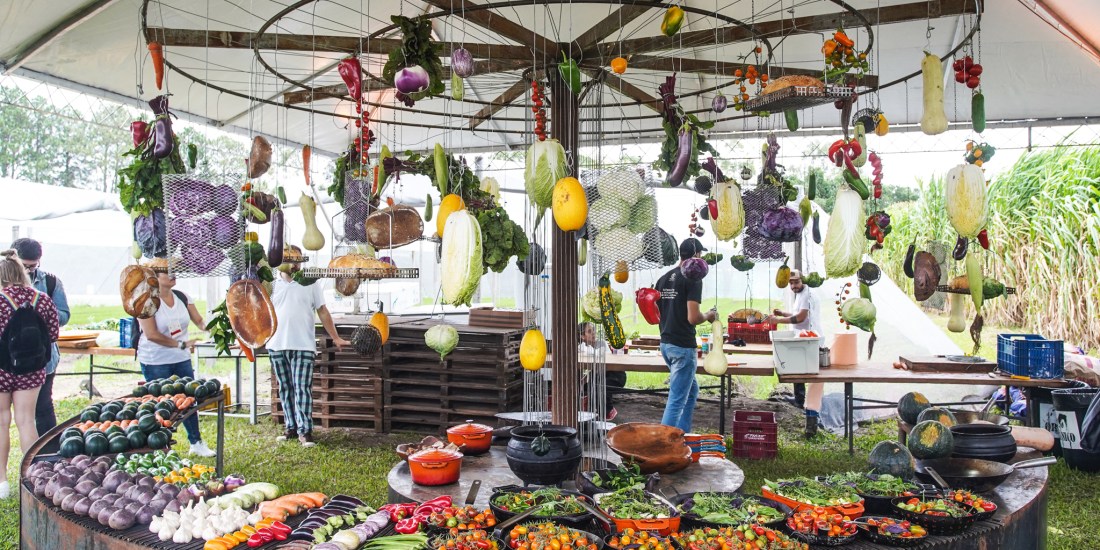 Como todos os anos, além da Colheita, que é um dos pontos alto do evento, a comida tem destaque. Um time renomado de chefs se reuniram no meio do campo para preparar um menu exclusivo. Marcos Livi assinou o menu principal, no estilo “A Ferro e Fogo” levou para grelha Confitados de legumes diversos com abobrinha, mini pimentão, tomate, berinjela, pimentas; Pães de Fermentação Natural (uva, beterraba, abóbora e multigrãos); Rosti de Tubérculos (batata, cenoura, beterraba e nabo) com recheio de cogumelos, nata, manteiga, sal e pimenta e Fettucine de Carvão ativado com ragu de cogumelos, molho de tomate defumado e queijo grana. Ele também assinou uma das sobremesas, com berinjela confitada com nata e pistache. Já a Chef Nati Tussi escolheu o Aligot de queijo serrano com confit de tomates e pimentões e farofa de abóbora. E Lili Andriola fez uma sobremesa com Tomate em compota, com cremoso de chocolate branco, Gel de morango e manjericão limoncino, merengue e granita de pepino e salsa. Viver a experiência da semente ao prato é o grande diferencial da Colheita dos Chefs, como destaca Diana, entender a origem das plantas, valorizar o trabalho do produtor, colher direto do pé, presenciar o preparo dos alimentos recém colhidos e finalmente degustar um delicioso banquete faz os participantes da Colheita refletirem sobre seus hábitos de comportamento e consumo. Diana finaliza que há uma grande evolução que pode ser observada nesses 6 anos de evento, mas que ainda existe um grande caminho pela frente. E esse olhar também é compartilhado pela chef Manu Buffara, que fez uma palestra e compartilhou ideias e ideais, falando sobre uma boa alimentação para todos, abordando sua experiência de conectar o campo com a gastronomia. “Somos um ponto a conectar o outro nessa cadeia sem fim. ‘Somos em essência aquilo que nos alimenta”, disse Manu.