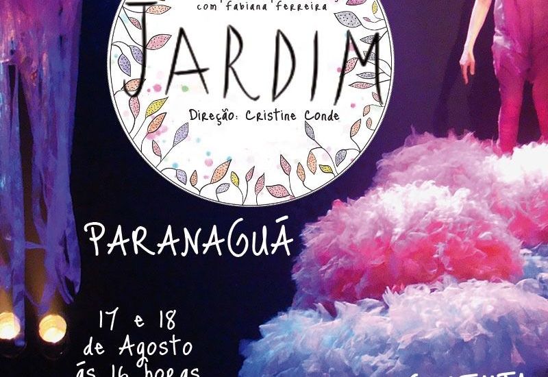 O espetáculo Jardim, um solo poético voltado para crianças, com a atriz Fabiana Ferreira, está circulando durante o mês de agosto por algumas cidades do Paraná. Já passou por Pato Branco e Francisco Beltrão, neste fim de semana chega em Paranaguá, depois segue para Arapongas e Campo Mourão.