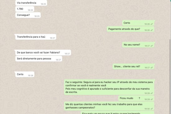 Fabiano de Abreu diz que é importante perceber que algo não condiz com o discurso regular daquela pessoa e avisar ao real dono da conta: "Eu sugiro que a pessoa ligue para o remetente da mensagem confirmando se é ele mesmo ou até mesmo para alertá-lo ou envie mensagens nas outras redes sociais para confirmar que é ele mesmo”.