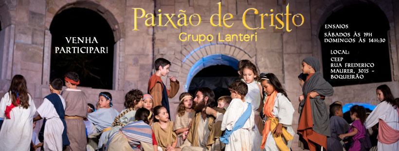 Os ensaios e preparativos para a tradicional apresentação do espetáculo “Paixão de Cristo”, do Grupo Lanteri, de Curitiba, já começaram e estão a todo vapor. Os encontros acontecem todos os finais de semana até a data da encenação, que este ano será no dia 10 de abril. Assim como nos anos anteriores, a apresentação será no Parque Cachoeira, em Araucária, na Região Metropolitana de Curitiba (RMC).