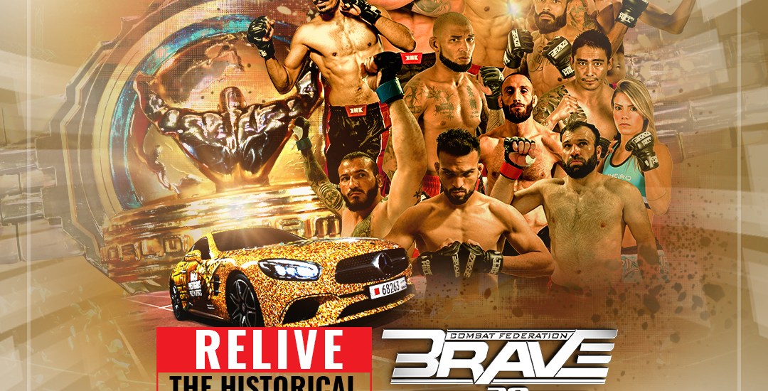 Maior evento de MMA do Oriente Médio, o BRAVE Combat Federation faria seu quinto show no Brasil neste sábado. Porém, a pandemia do Coronavirus mudou os planos da organização, que adiou o evento até segunda ordem. Fãs do esporte, porém, ainda terão muita ação do conforto de suas casas. O BRAVE CF 29, que ocorreu em novembro do ano passado, será reprisado neste sábado, a partir do meio-dia (horário de Brasília), no Facebook oficial do BRAVE CF.