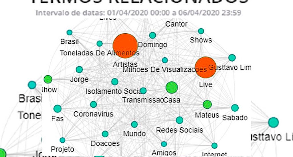 Levantamento feito pela STILINGUE – plataforma líder nacional de Inteligência Artificial (IA) para o idioma Português – entre os dias 1 e 6 de abril, apurou que para as palavras ‘live e artistas’, foram 3.294 menções.