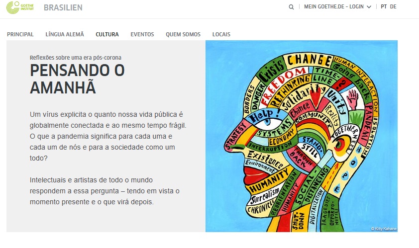 O “Pensando o Amanhã”, projeto do Goethe-Institut, apresenta depoimentos de artistas e intelectuais de diversos países que lançam olhares diferentes sobre o que será o planeta pós-coronavírus