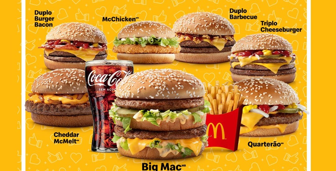 *Big Mac, Quarterão, Triplo Cheeseburger, Duplo Barbecue, McChicken, Duplo Burger Bacon ou Cheddar McMelt.