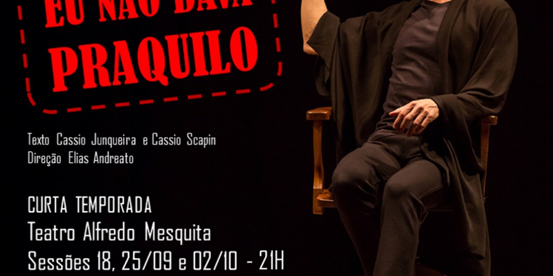 Espetáculo Eu Não Dava Praquilo, de Cássio Scapin e Cássio Junqueira com direção de Elias Andreato, reestreia no dia 18 de Setembro às 21h no Teatro Alfredo Mesquita com transmissão Online no Facebook da Produtora NOSSO cultural