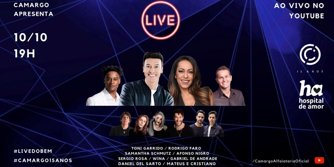 No dia 10 de outubro, a Camargo Alfaiataria reunirá diversos artistas da música brasileira, dentre eles Toni Garrido, Samantha Schmutz, Afonso Nigro e Rodrigo Faro para uma live beneficente em prol do Hospital de Amor de Barretos, dirigido por Henrique Prata. A transmissão será realizada pela Camargo Alfaiataria, no canal oficial da marca no Youtube.