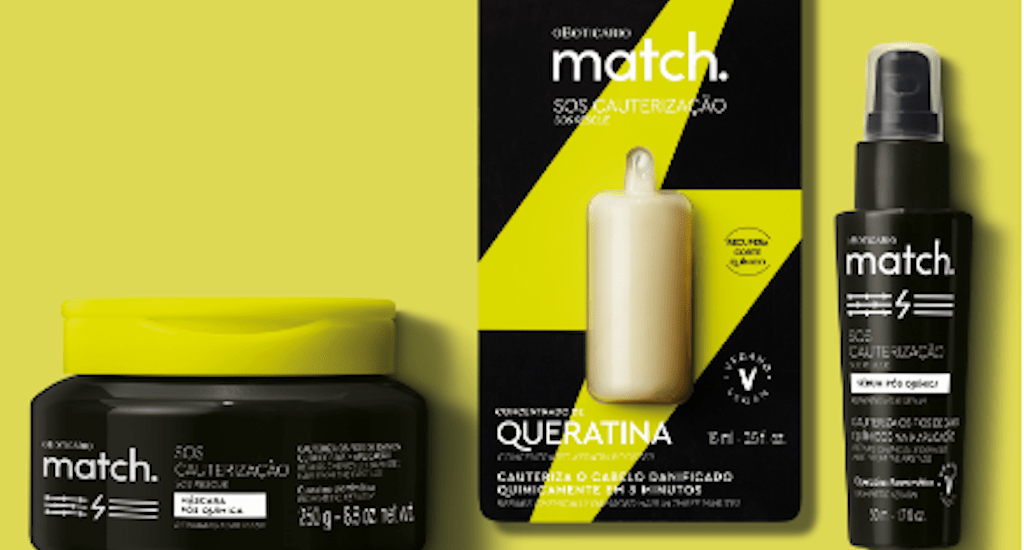 A busca por procedimentos químicos e mudanças capilares faz parte da vida de grande parte das mulheres brasileiras. Pensando nisso, o Boticário, a marca de beleza mais amada do Brasil*, apresenta a linha Match SOS Cauterização voltada, especialmente, para os cabelos danificados por química. Fios que passaram por algum procedimento de alisamento, descoloração, tintura, escova progressiva e/ ou permanente serão reparados com tratamento intensivo de cauterização.