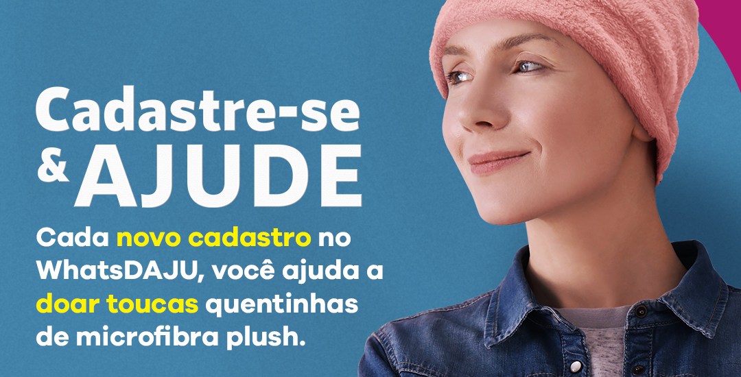 Depois é só compartilhar com seus amigos e familiares. Quanto mais mensagens chegarem ao WhatsApp Daju, mais toucas serão doadas.