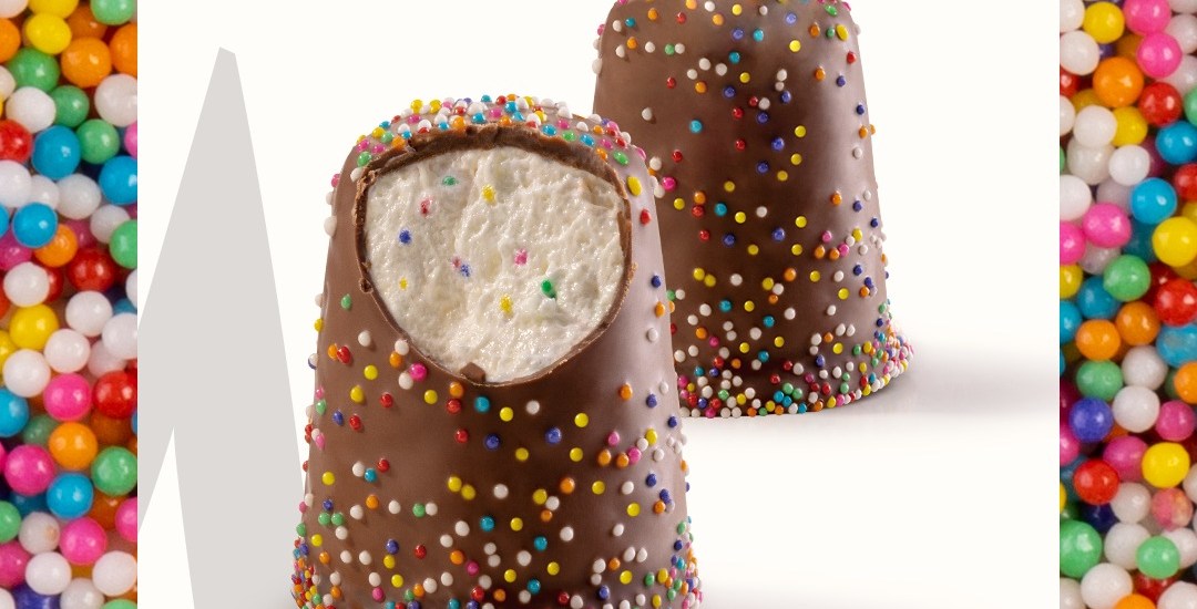 Nessa nova versão a textura aveludada do marshmallow ganha a explosão de crocância do dragê, assim como a cobertura de chocolate ao leite que também ficou mais colorida e crocante, graças a essas bolinhas que explodem e se transformam em uma experiência sensorial totalmente diferente.