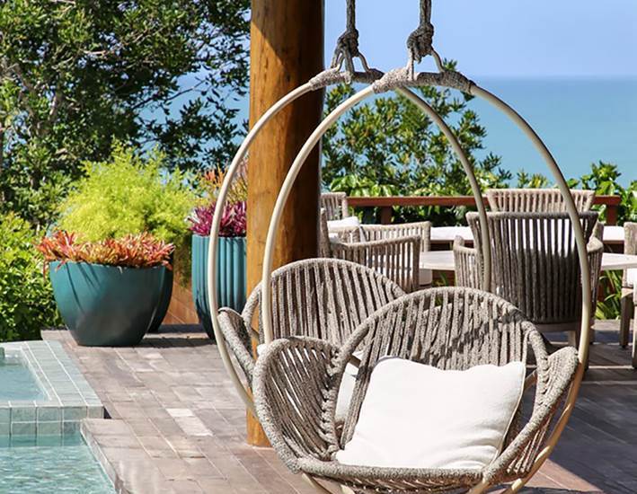 Pensando em mobiliário para área externa, alguns cuidados são redobrados para evitar dores de cabeça. A maresia e a umidade são as principais inimigas da conservação das peças deste espaço, por esse motivo, é importante investir em móveis resistentes e com materiais adequados, como a poltrona balanço Arggo, da Sierra Curitiba, que além de prática, ainda agrega uma estética de personalidade aos projetos!