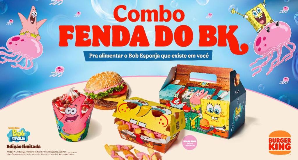 Idealizada pela agência David, a campanha traz um storytelling baseado no universo Bob Esponja e seus personagens, atendendo aos fãs do desenho da Nickelodeon. Para a ação, o Burger King® traz o Combo Fenda do BK, que une o suculento Burger do BK, a crocante Batata do Esponja e o delicioso BK Mix do Estrela. O Burger do BK é composto por pão com gergelim, molho rosa sabor defumado, alface, tomate, picles, fatia de queijo sabor cheddar e hambúrguer blend gourmet 120g. A Batata do Esponja também conta com o molho rosa sabor defumado. O BK Mix do Estrela é feito com massa de baunilha, calda de morango e confeito de chocolate e pode ser adquirido separadamente, também.