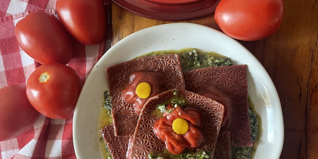 Os moldes do ravioli foram pensados cuidadosamente para a primavera e possuem inspiração na natureza, especificamente na flor Dipladênia, uma trepadeira semilenhosa e volúvel, que tem um lugar especial na entrada da L’artigiana e pode ser observada por quem passa pelo local.