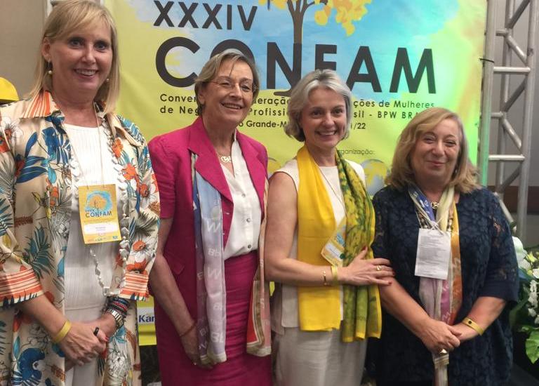 (Da esq. para a dir.): Paz Martin, vice-presidente de Negócios da BPW Internacional, Catherine Boshart, presidente da BPW Internacional, Alison Mazza Lubascher, presidente eleita da BPW Brasil, e Giusepina Seidita, vice-presidente de Associadas da BPW Internacional.