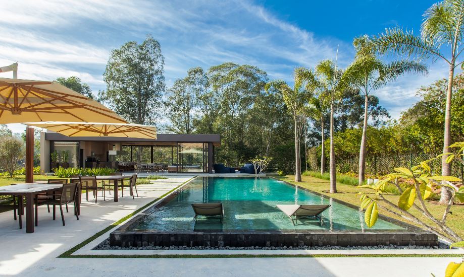 Um lugar sinônimo de paz e sossego, a casa de campo em Itu, interior de São Paulo, ganhou diversos espaços de lazer e uma piscina de borda infinita, com direito à com prainha, para recarregar as energias dos moradores | Projeto de Korman Arquitetos | Foto: Eduardo Pozella |