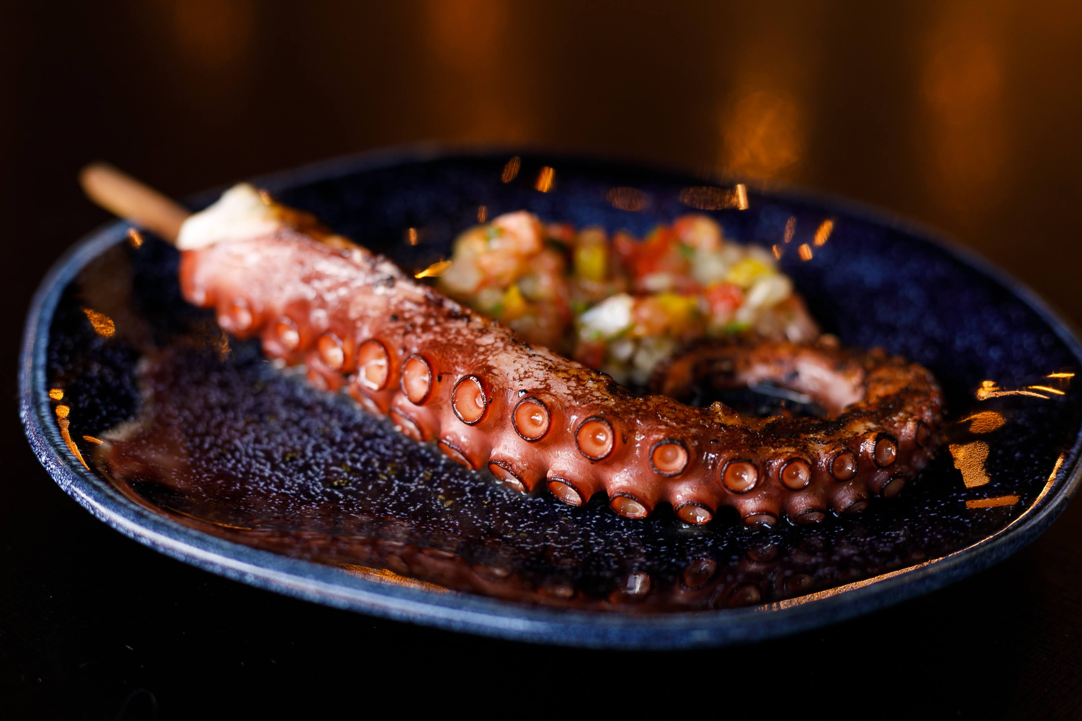 O Onetopus consiste em polvo no espeto, servido no vinagrete da casa – Cred Iuri Poletti |