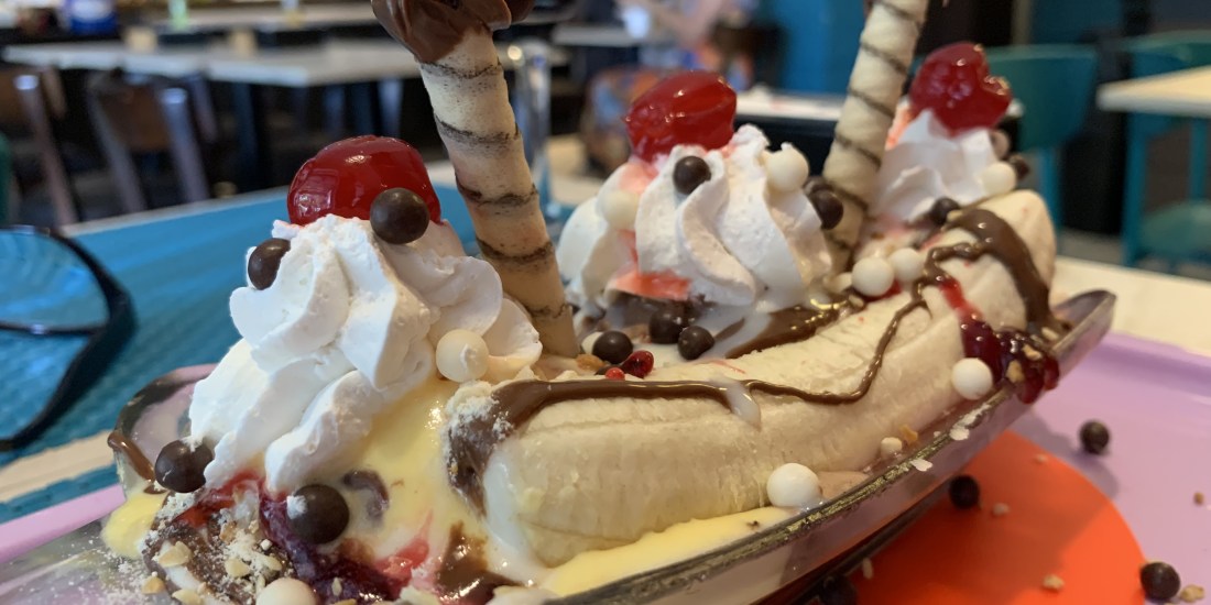 É tudo de bom se deliciar com sorvetes sobre uma banana “Split” que, na fiel tradução, significa cortada ou dividida ao meio!