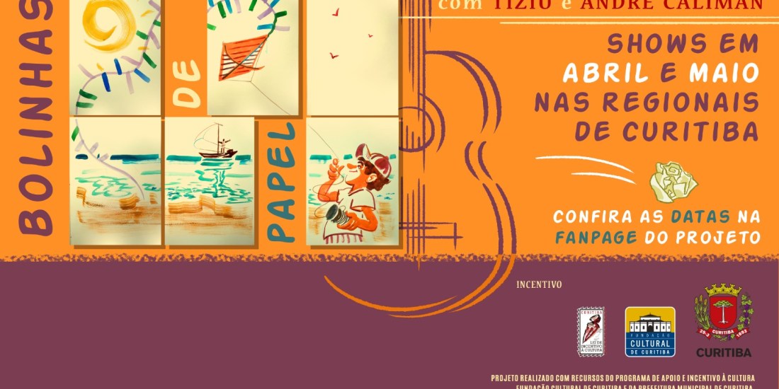 Nos meses de abril e maio, as Regionais de Curitiba recebem o show “Bolinhas de Papel”, com o músico Fabiano (O Tiziu) e o cartunista André Caliman, para alegrar as manhãs e tardes de crianças de escolas e entidades ligadas à Prefeitura Municipal de Curitiba. O projeto é incentivado pelo Fundo Municipal da Cultura, através da Fundação Cultural de Curitiba.