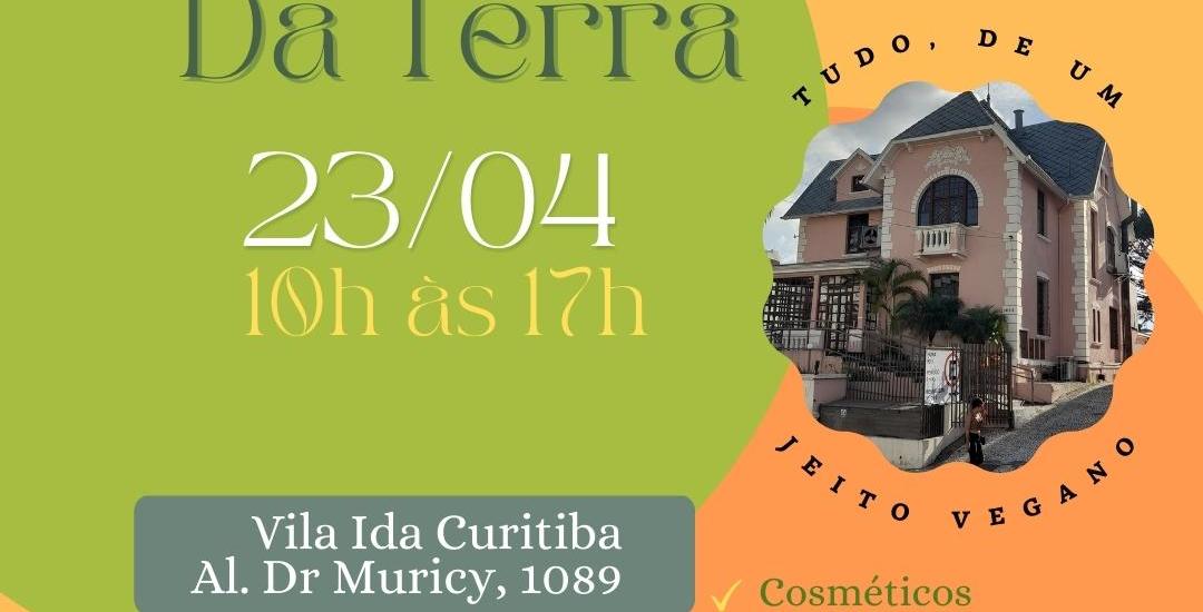 A edição de abril da @daterra.feiraveg será realizada domingo, dia 23, das 10h:00 às 17h:00, na Vila Ida em Curitiba, onde será possível experimentar pratos veganos da cidade, além de conhecer marcas que oferecem produtos de limpeza, cuidados pessoais, brechós, cafés, lanches e panificação. Com entrada gratuita, será conversar com especialistas, entusiastas da área e conhecer novas pessoas que compartilham interesses semelhantes aos seus, tudo isso em um ambiente acolhedor e amigável.