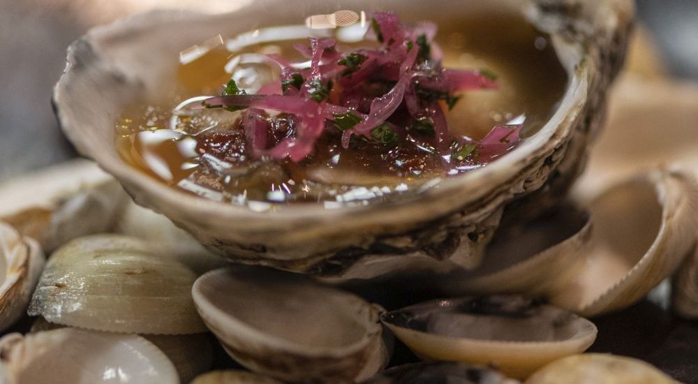 A seleção do Menu Degustação começa com um aperitivo de ostra fresca trazida de Santa Catarina com um saboroso caldo de carne suína com cumaru, salsa de chipotle e repolho fermentado. Na sequência, Danilo serve um curioso preparo de galinha sobre uma brioche tostada coberta com creme de cará, vinagrete de pimenta Cambuci e castanha do Pará. A picância é leve e amenizada pelos outros ingredientes do prato.