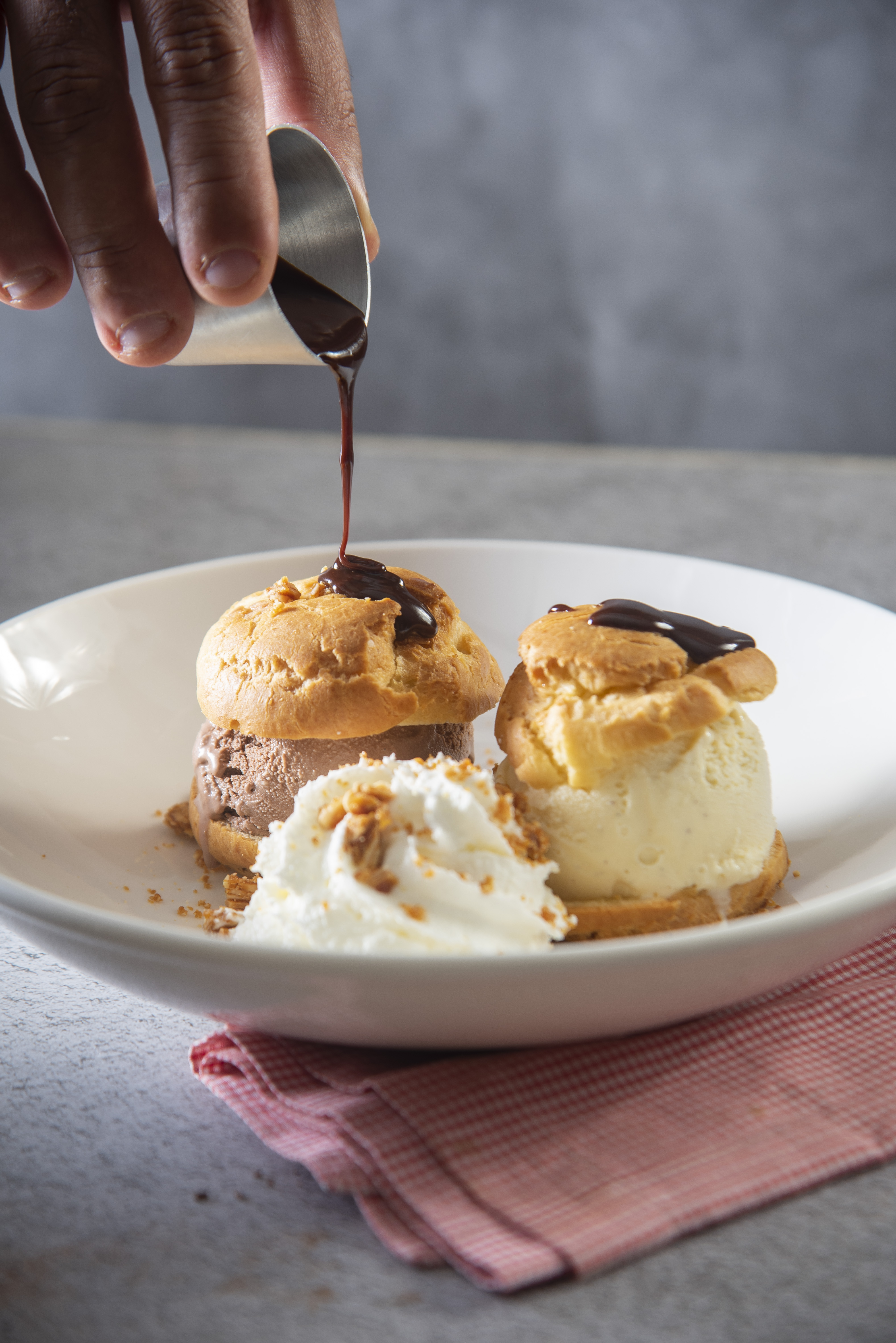Choux Cream com Sorevete, Chantilly e Calda de Chocolate Quente – Juli – Comida de verdade