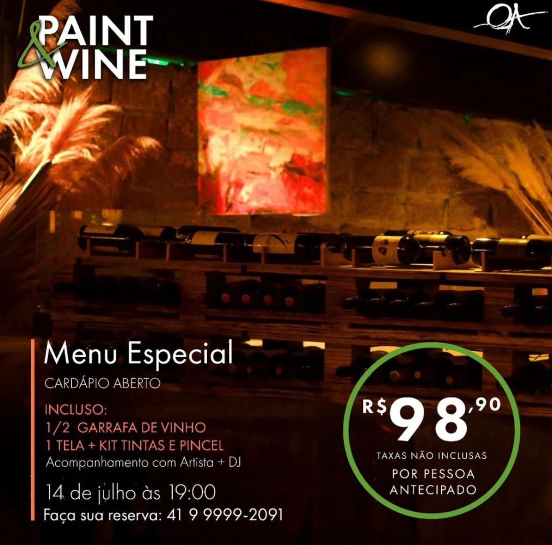 ‘Opera Arte – paint e wine 14 julho 2023 – foto divulgacao’Publicado julho 9, 2023 em 1170 × 1156 em ÓPERA ARTE PROMOVE JANTAR COM PINTURA DE TELAS PELOS CLIENTES ‹ Return to post Deixe um comentário Cancelar resposta Δ