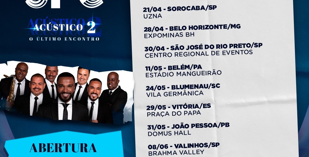 Confira abaixo as datas e as cidades que receberão os shows da tour “SPC Acústico 2 – O Último Encontro”, até o momento: