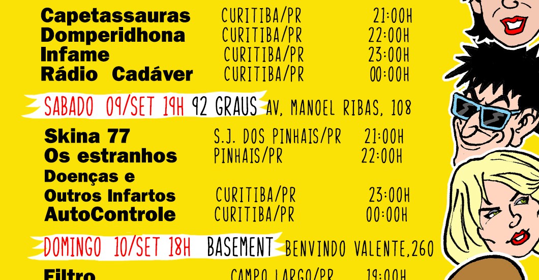 A 10ª edição será realizada de 8 a 10 de setembro no 92 Graus (o templo do underground curitibano, que está completando 32 anos de vida) e no Basement Cultural (que vem se consolidando como um dos mais importantes espaços para a música autoral da capital paranaense).