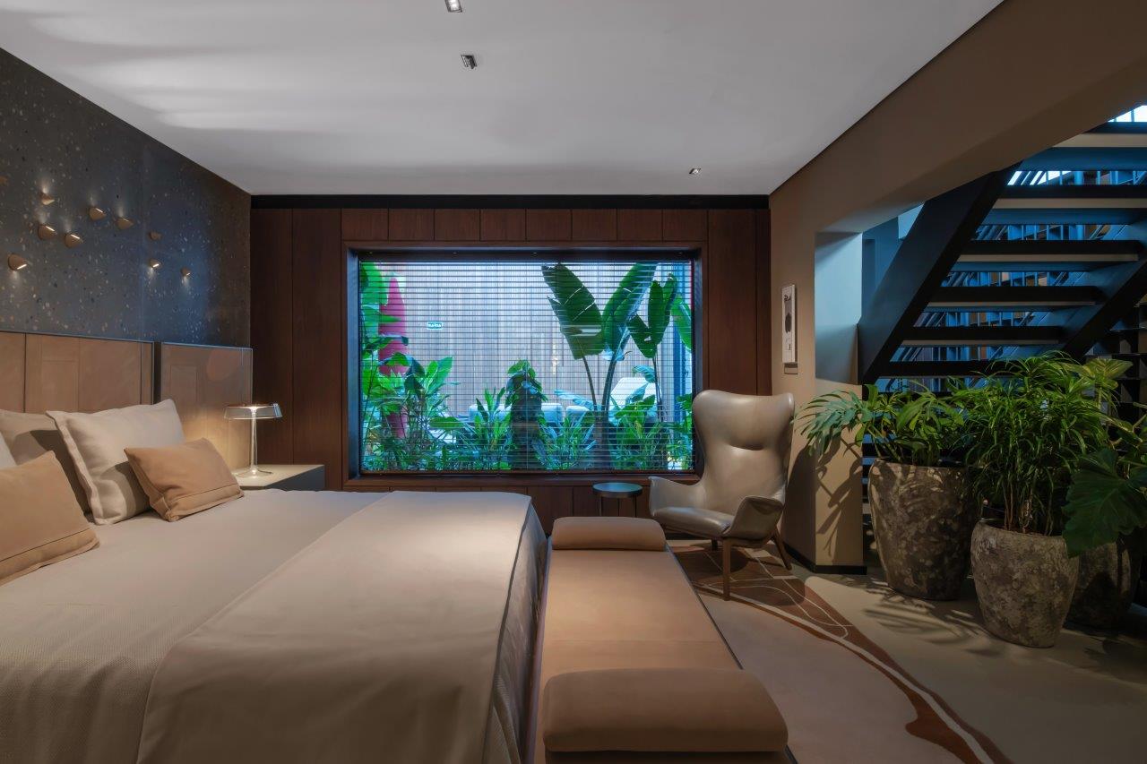 Conhecido por sua visão única e abordagem criativa, o profissional trouxe uma interpretação contemporânea para o tema, criando um projeto que destaca a conexão entre a felicidade e a arquitetura. A inspiração de Elmor se baseia em estudos científicos sobre o impacto do ambiente nas emoções humanas. A presença de elementos visuais ligados à natureza, como o jardim, é uma expressão da Biofilia — o “amor pelas coisas vivas” — gerando sensação de bem-estar.
