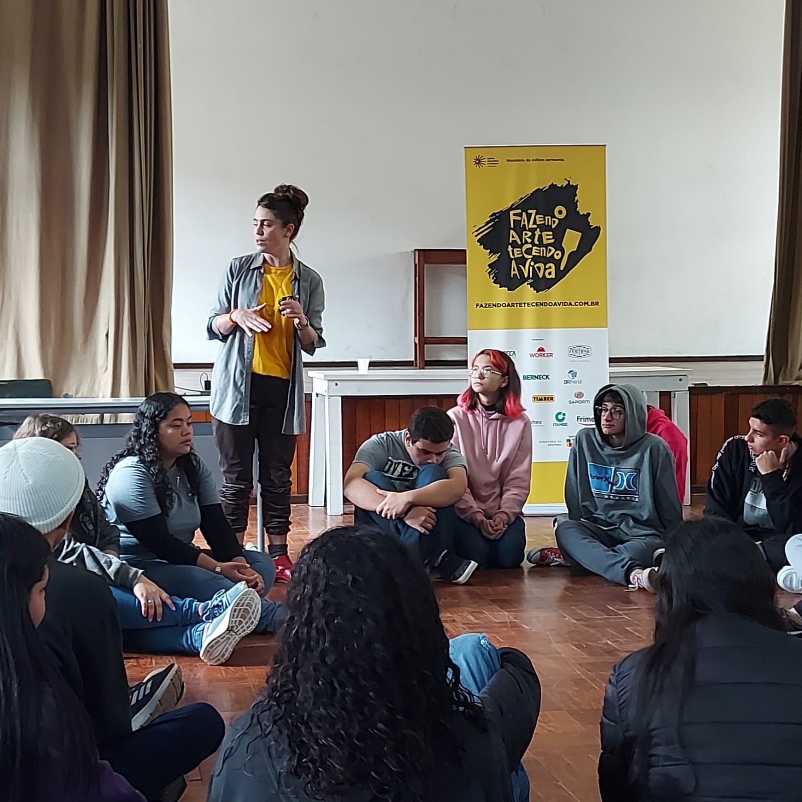 De 02 a 06 de outubro, a cidade de Araucária recebe as ações do projeto Fazendo Arte, Tecendo a Vida. As atividades serão realizadas com quatro turmas do Colégio Estadual Professor Elzeário Pitz, que irão participar de oficina de pintura com a artista plástica Janete Mehl e oficina sobre a importância da cultura da preservação do patrimônio com a restauradora Tatiana Zanelatto e os atores da Trupe da Saúde. Os estudantes ainda terão a oportunidade de acompanhar a pintura de um mural na escola com o artista Klaus Koti.