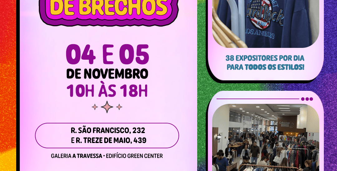 Este mês o Encontro de Brechós Saí do Armário completa dois anos de atividade e as organizadoras estão preparando uma edição especial que promete surpreender e encantar os aficionados por peças únicas e cheias de estilo. Nos dias 04, 05, 18 e 19, das 10h:00 às 18h:00, a Galeria A Travessa, conhecida por ser um espaço acolhedor que valoriza a economia local, receberá as duas edições do encontro com uma programação que vai movimentar a cena da moda na cidade. A entrada é gratuita, o local é Pet friendly e o evento é para todos!