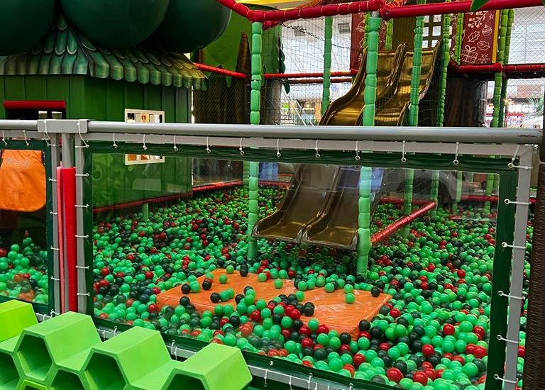 O parque conta com piscina de bolinhas grande, diversos escorregadores grandes e pequenos, circuito de aventura, entre outros atrativos divertidos.