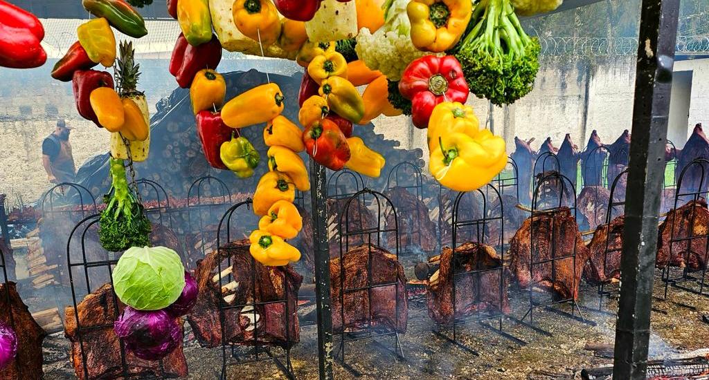 Sob o comando do chef Marcos Oliveira, o cardápio contará com a tradicional costela fogo de chão, além de filé de coxa de frango, linguiça, arroz, mandioca com queijo provolone e bacon, mix de folhas, tomate com cebola, farofa e maionese.