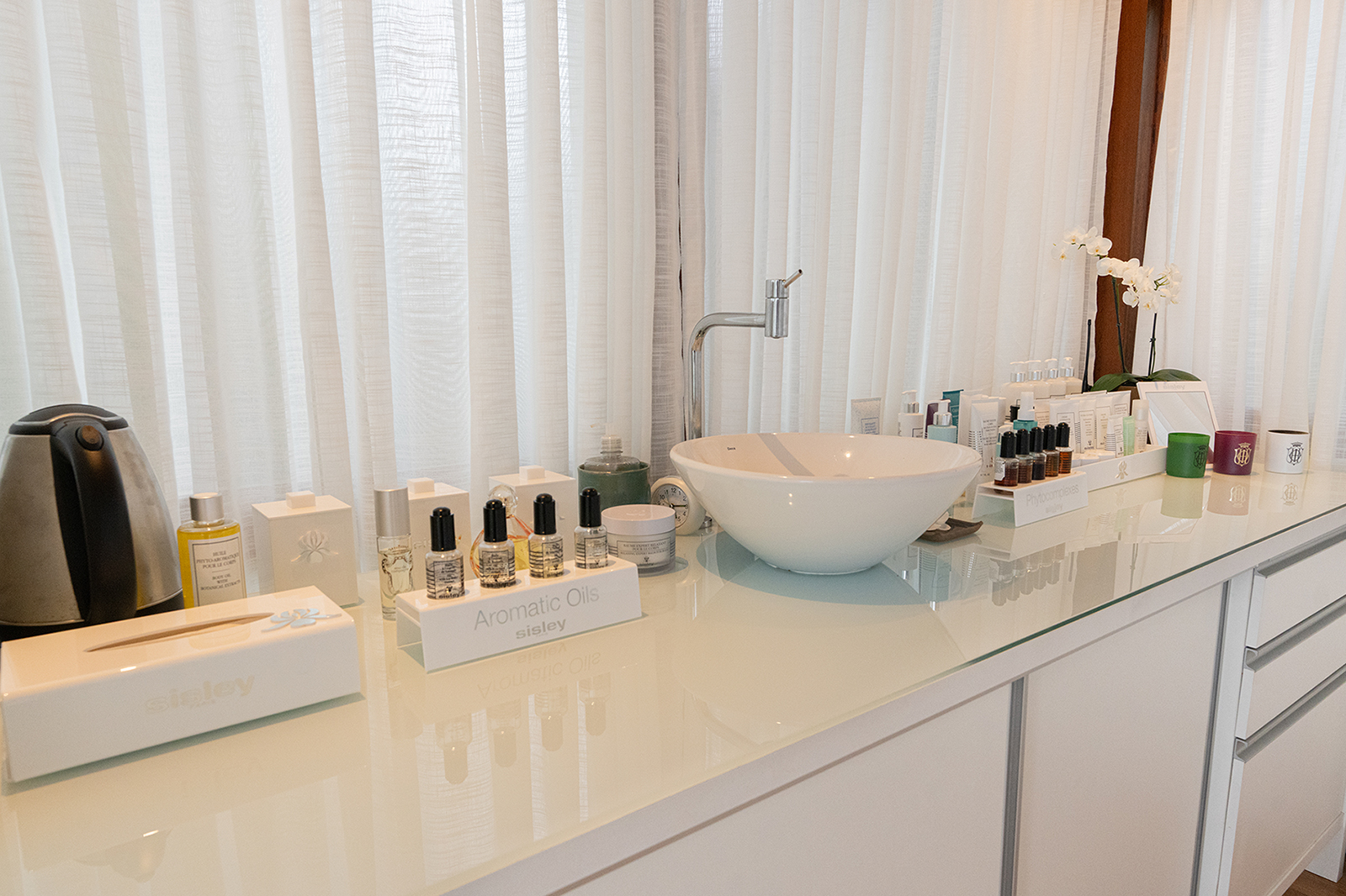 Além da possibilidade de incríveis produções de maquiagem, a Sisley Paris oferece uma oportunidade única de desfrutar de momentos de relaxamento e cuidado, com experiências exclusivas no renomado SPA do Ponta dos Ganchos Exclusive Resort. No ambiente paradisíaco, cercado pela natureza e som das ondas do mar, é possível optar por tratamentos para rosto e corpo que associam toda a parte sensorial dos óleos essenciais e extratos vegetais Sisley ao poder da aromaterapia e das técnicas apuradas de manipulação da pele.