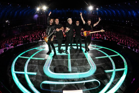 Na sequência, pisam no palco os músicos Helinho Brandão (sax), Vinícius Araújo (guitarra), Thiago Alves (baixo), e Endrigo Bettega (bateria).