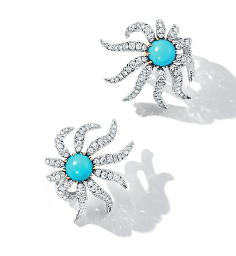 Jean Schlumberger by Tiffany Hedges and Rows ear clips in platinum and 18k yellow gold with turquoise and diamonds