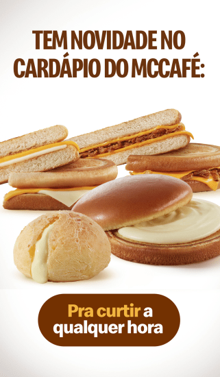 Para saber onde encontrar os produtos, acesse a página do seu restaurante favorito no app do Méqui e veja todos os serviços disponíveis, incluindo cardápio de café da manhã e McCafé. Confira todas as novidades disponíveis: Café da Manhã (das 7h às 11h da manhã):